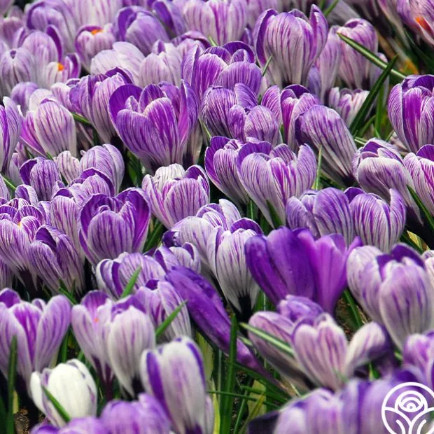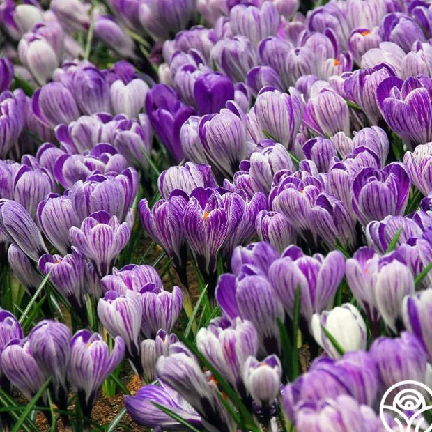 Note: Bulbs ship starting in October based on availability and your zone, unlike other products. Plant around or after your first frost but before the ground freezes. Pickwick features silvery-lilac flowers with dark purple stripes that proudly announce the beginning of spring. This variety of Crocus does well in pots, beds, or borders and looks great when mass planted. Expect heights of up to 5″ on this large, flowering plant. Expect more blooms the following spring as bulbs multiply rapidly.